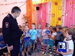 В детском саду прошли мероприяти по профилактике детского дорожно-транспортного травматизма в рамках IV этапа широкомасштабной акции «Внимание – дети!». Для каждой возрастной группы были организованы мероприятия, в процессе которых закреплялись и формировались знания детей о правилах дорожного движения: целевые прогулки, беседы, игры, занятия, эксперименты, интеллектуальные минутки, игры-викторины и т.д. Итоговым мероприятием для ребят старшего дошкольного возраста стала встреча с сотрудником Госавтоинспекции, инспектором по пропаганде ГИБДД по Абинскому району Пилипенко Р.А.